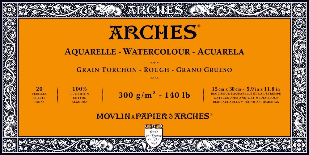Akvarellblokk Grovkornet Arches 300g - 10x25 cm