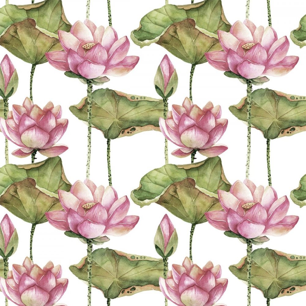 Stilig mønstret CTC-belagt duk i metervare med vannliljemønster.