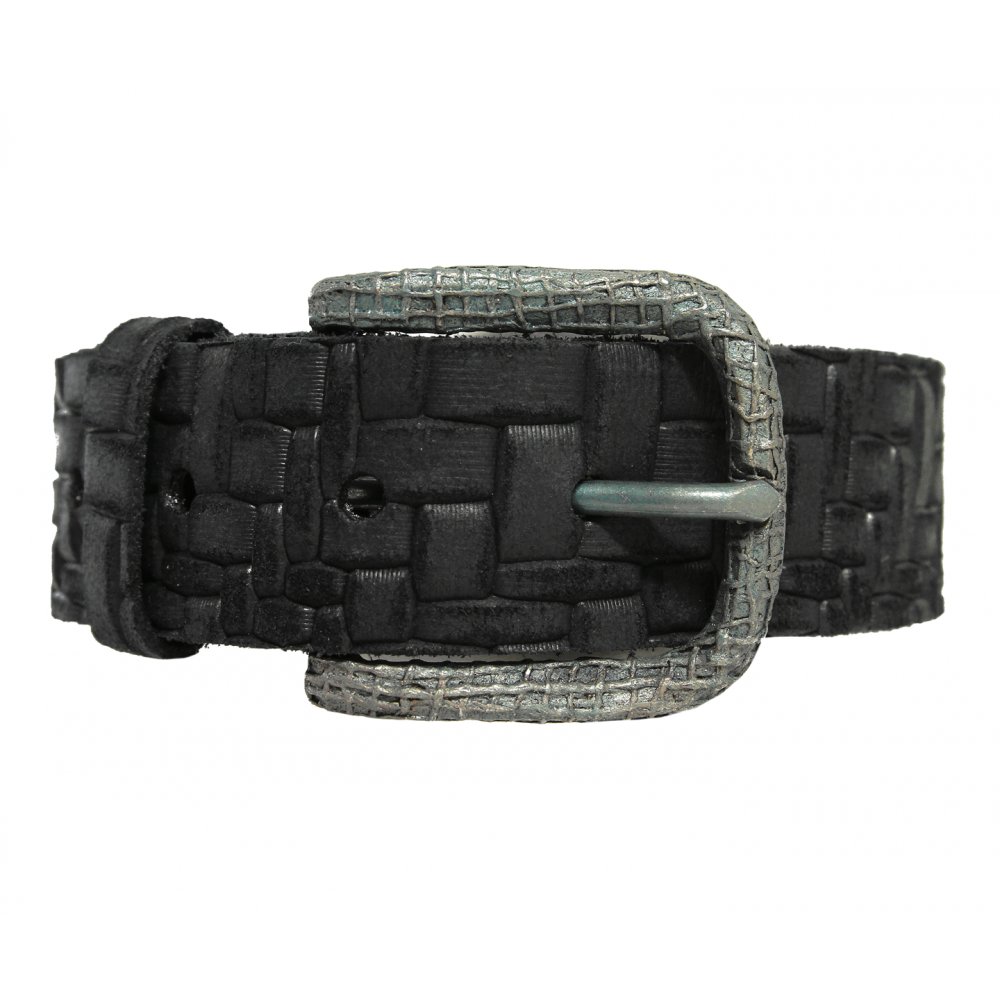 35 mm damebelte i kuskinn med mønstret spenne og krokodillemønstret lærreim.