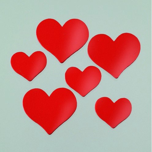 Dekortre 24 x 21 / 35 x 30 mm - rød 24 stk. hjerter blandet