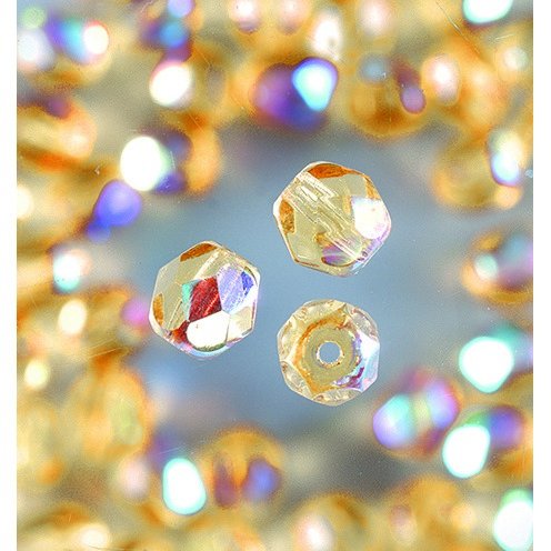 Glassperler fasettert 4 mm - lys topas 100 stk. rund, glitrende