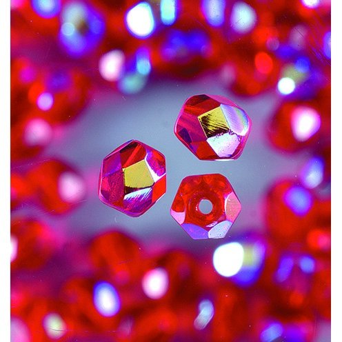 Glassperler fasettert 4 mm - rød 100 stk. rund, glitrende