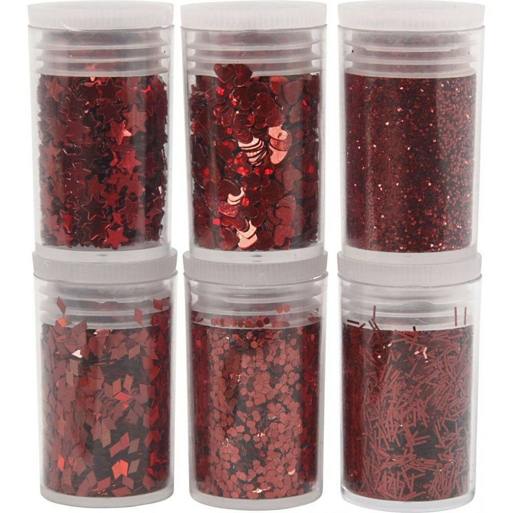 Glitter og paljetter - rød - 6 x 5 g