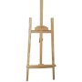 Et gulvstaffeli til portrettmaling. Dette staffeliet har en høyde på 150 cm, maksimal høyde for lerret 84,5 cm, minimumshøyde 40 cm og bredden på bena er 60 cm.