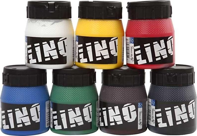 Linoleumsmaling - blandede farger - 7 x 250 ml