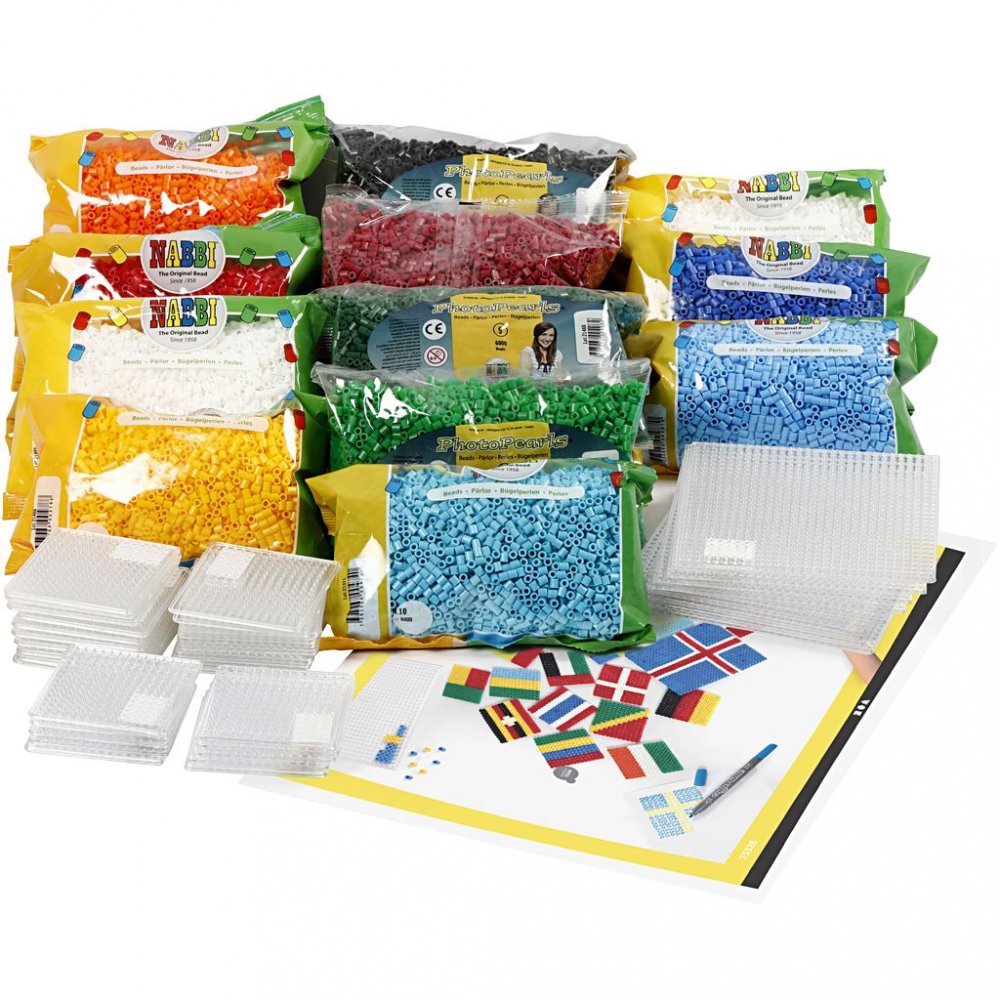 Stort materialsett med perleplater og rørperler i utvalgte farger - nok til 150-500 forskjellige flagg. Inspirasjonsark følger med.