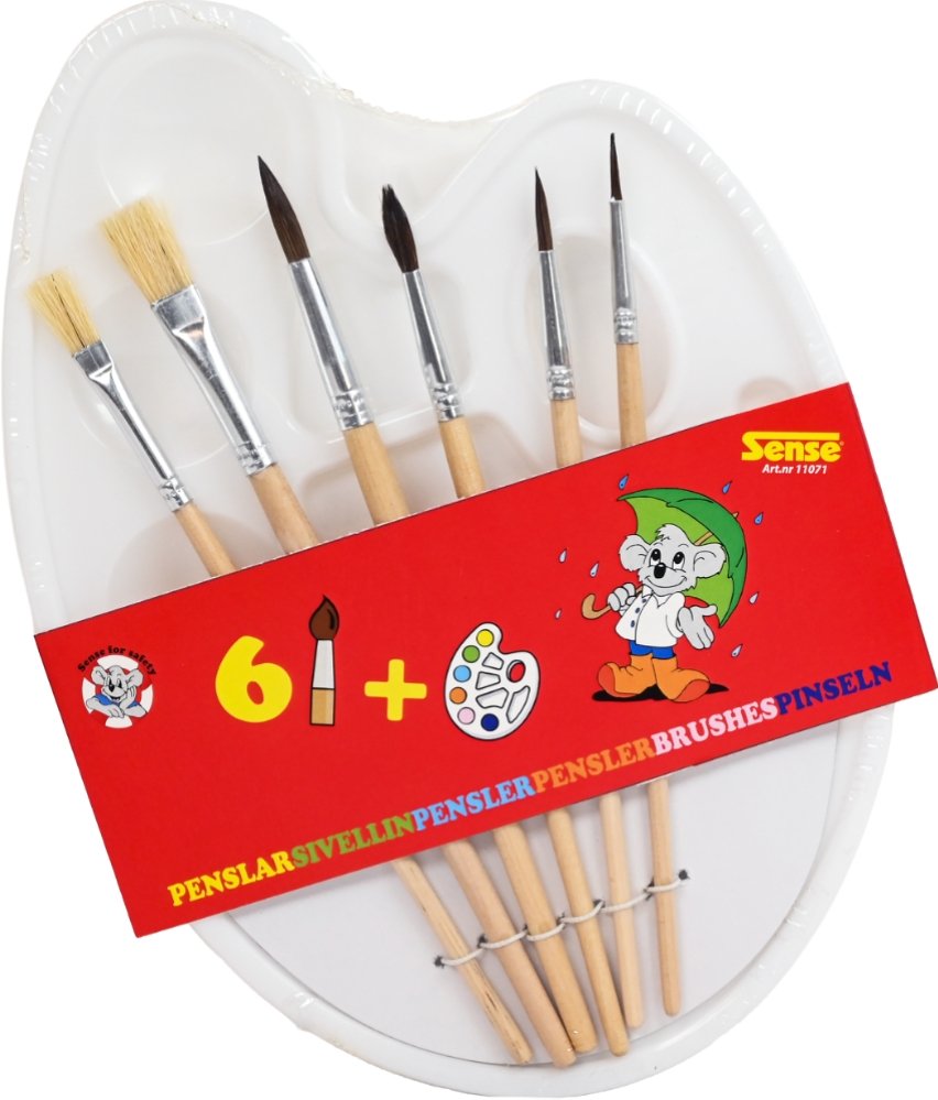 Palett med pensler, naturbørstehår, 6-pakning