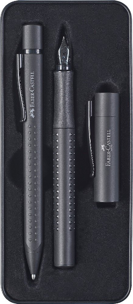 For de som foretrekker klassisk og elegant, tilbyr Faber-Castell et pennesett i sort. Settet inneholder en fyllepenn med spiss i rustfritt stål i størrelse M og en kulepenn med XD-spiss. Pennene er ergonomisk utformet og glir utrolig jevnt på papiret.