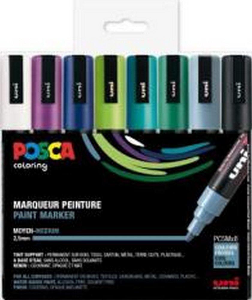 Et sett med 8 penner posca 5M i etui. Inneholder: Kalde farger