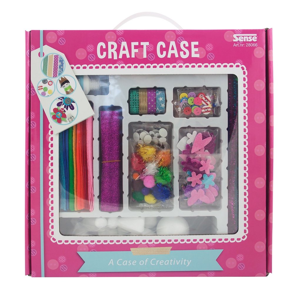 Stor sortimentpose med alt håndverk du kan forestille deg. Flørtekuler i forskjellige formater, teppe, glitterlim, selvklebende glitterpapir, rørrenser, pom-pom, lim, øyne, glitterbånd, glittery klistremerker, knapper og glitrende steiner. Emballasje 32x34 cm.