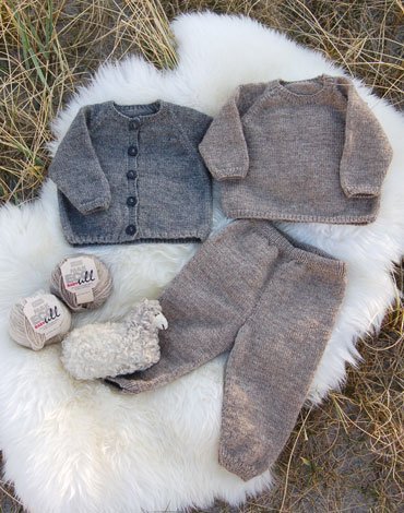 Strikkemønster - Glattstrikket raglangenser, cardigan og bukse