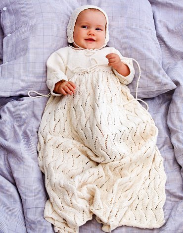 Strikkemønster - Strikket dåpskjole og hette