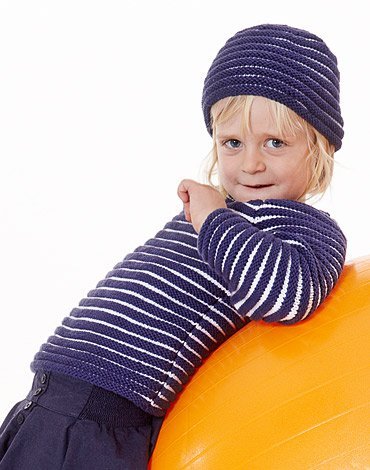 Strikkemønster - Strikket stripete genser og lue