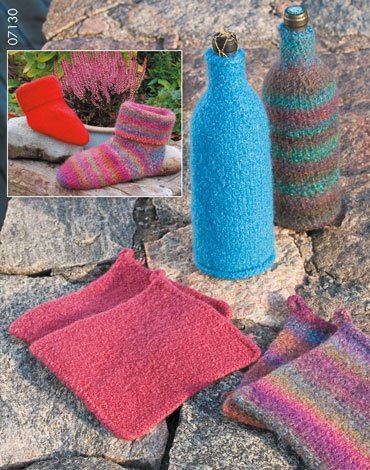 Strikkemønster - Tovede grytekluter, flaskevarmere/kjølere og sokker