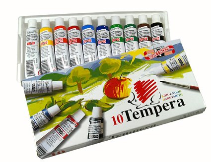 Temperasett i pappkartong med 10 rør á 16 ml i sorterte farger.